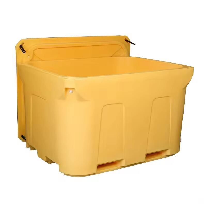The Large Capacity Rotomolded Ice Bin 1000L is a commercial insulated container designed to preserve seafood freshness during storage and transportation. Built with heavy-duty polyethylene and polyurethane foam insulation, this industrial cooler box provides exceptional temperature retention without requiring electricity.